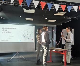 Am 22. Januar 1963 unterzeichneten der französische Staatspräsident de Gaulle und der deutsche Bundeskanzler Adenauer die Elysee-Verträge. Bis heute sind die Verträge Grundlage der Freundschaft zwischen Frankreich und Deutschland. Aus Anlass des 61. Jubiläums der Unterzeichnung fand am Perthes-Gymnasium am 23. Januar wieder ein deutsch-französischer Tag statt. Die Schüler*innen der ersten Fremdsprache Französisch bereiteten für die jüngeren aus den Klassen 8 bis 10 Ateliers vor, in denen diese sich mit unterschiedlichen Aspekten der deutsch-französischen Beziehungen beschäftigten und ihre Ergebnisse im Anschluss den Bürgermeistern Friedrichrodas und Tabarz´ und Gästen des Freundschaftsvereins Georgenthals sowie ihren Mitschüler*innen und Lehrer*innen präsentierten. So entstanden ein Podcast, szenisch umgesetzte Interviews und kleine Vorträge. Der gelungenen Abschluss der Veranstaltung war das ebenfalls von Schüler*innen vorbereitete französische Buffet.