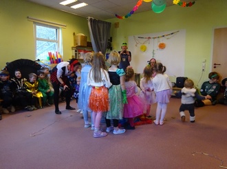 Wie jedes Jahr gestalteten die Erzieherinnen ein leckeres Frühstück für die Kinder. Mit einer Polonaise durch das ganze Haus startete unsere Rosenmontagsparty im Turnraum. Nach flotter Faschingsmusik tanzten alle Kinder und stellten ihre Kostüme vor. Kleine Spiele und Basteleien ließen den Tag wie im Fluge vergehen.