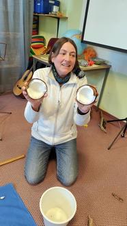 Die Kinder erfuhren in einer Andacht und einer kurzen Dokumentation wie die Menschen im Pazifik auf den Inseln leben. Symbolisch hierfür sind neben einer farbenfrohen Unterwasserwelt, tropischen Blumen und Palmen auch die Kokosnüsse. Unsere Erzieherin Sylvia öffnete unter Staunen der Kinder eine solche Nuss und alle konnten von dem frischen Fruchtfleisch probieren.