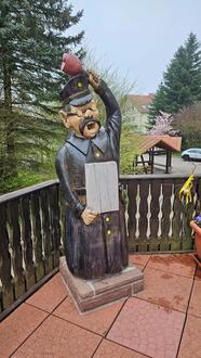 Unser Markus Völlmer hat den Finsterberger "Usklingler" wieder schick gemacht!! Die Holzfigur, welche vor 20 Jahren von Gerfried Fuhlbrügge geschnitzt wurde, war mächtig in die Jahre gekommen. Nun verbreitet er in Finsterbergen wieder Neuigkeiten und Informationen, wenn er mit seiner Glocke bimmelt. Sozusagen das Whatsapp von früher....