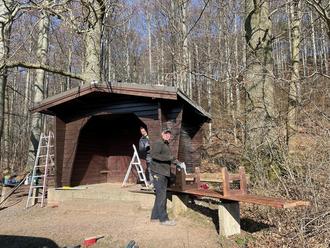 Anfang März haben Kay Brückmann und Marco Zickler zusammen mit einem weiteren Ehrenamtlichen der Schutzhütte am Dachsberg einen neuen Anstrich verpasst.