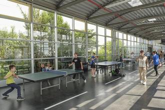 Abbildung 1: Im Hintergrund Flo und Kilian beim Spielen im Rahmen des TT- Sportabzeichens