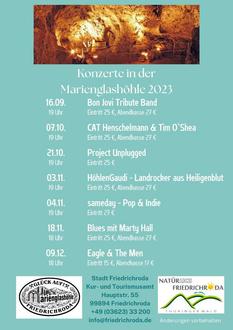 Ab September veranstalten wir für Sie wieder unsere beliebten Konzerte unter Tage. Die letzten Termine, welche vor ausverkaufter Höhle, im Frühjahr stattgefunden haben, liegen zurück. Die Sommerpause ist vorbei. Ab sofort erhalten Sie bei uns die Eintrittskarten für die kommenden Termine: