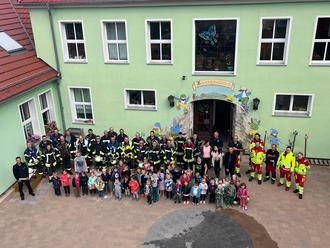 An einem Vormittag konnte die Feuerwache in Hörselgau erkundet werden. Vom Ausprobieren der Feuerwehrschläuche über das Erhören der Sirenen bis hin zum Bewundern der Autos, keine Frage blieb offen.