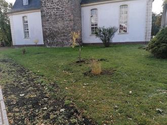 Auf dem Kirchengelände fand ein großer Einsatz statt. Der Wunsch der Kirchgemeinde war es die Hecke zu entfernen, um einen besseren und schöneren Zugang zur Kirche zu haben. Die Hecke wurde beseitigt, die Bäume etwas gestutzt und neue Pflanzen gesetzt.