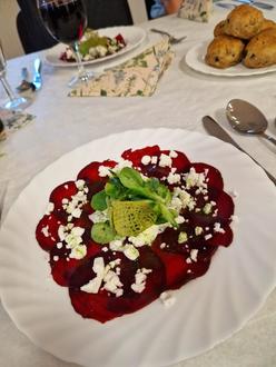 Das Highlight des Abends war das exquisite 4-Gänge-Menü, welches bei den Gästen eine Geschmacksexplosion auslöste. Der Abend begann mit einem mit Feta verfeinertem Delikaten Rote-Bete-Carpaccio. Diese Vorspeisen waren nicht nur ein Fest für den Gaumen, sondern auch ein Augenschmaus, der die Vorfreude auf die kommenden Gänge steigerte.
