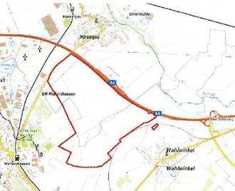 Übersichtsplan mit Geltungsbereich der 1. Änderung des Bebauungsplanes „Industriegebiet Waltershausen-Ost/ Hörselgau" - (rot umrandet, unmaßstäblich)