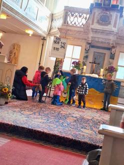 Die Kinder und Erzieher der "Pusteblume "aus Laucha haben die Geschichte der "Palme " erzählt und ein Lied vorgetragen. Während die Erwachsenen der Predigt ums "Ernten und Danken " lauschten, zogen die Kinder in die Scheune von Herrn Wolf. Er hatte alles für den Kindergottesdienst vorbereitet. Hier hörten die Kinder die Geschichte vom " Sämann ",bemalten und bepflanzten kleine Blumentöpfe.