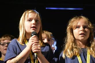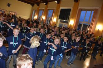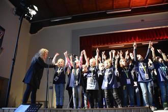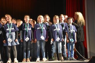 Am späten Nachmittag war es dann soweit. Nach einigen Solostücken von Christina Rommel wurde jede Klasse musikalisch von Martin Schräpfer am Piano und von Sven Lieser an der Gitarre begleitet und sang gemeinsam mit der Sängerin das einstudierte Lied. Das war für die Kinder ein tolles Erlebnis und für die vielen Eltern, Geschwister oder Großeltern ein toller Moment, ihre Kleinen auf großer Bühne zu erleben. Großen Applaus und Jubelrufe gab es für die Gesangsdarbietungen kleinerer Gruppen oder Solisten.