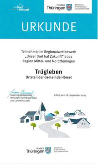 Trügleben als Ortsteil der Gemeinde Hörsel hat sich mit acht anderen Dörfern aus der Region Mittel- und Nordthüringen beworben und wir sind stolz darauf, Teil dieses Wettbewerbs gewesen zu sein. Es war inspirierend zu sehen, wie viele engagierte Kommunen sich für eine positive Zukunft einsetzen.