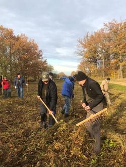 Thomas Oppel, von der Nabu machte uns bei einer Naturführung darauf aufmerksam. Nur was man kennt, kann man auch schützen. Die seltenen Pflanzen leben in einer Gemeinschaft und sind in Thüringen stark gefährdet. Damit sich diese Pflanzen gut entwickeln können, muss altes Gras gemäht und Buschwerk teilweise entfernt werden. Dies taten Naturschützer, an deren Spitze unser ehemaliger Lehrer und Freund Dr. Wolfgang Klug stand. Er lies es sich nicht nehmen und packte mit seinen 87 Jahren tüchtig mit an.