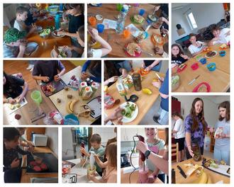 Mitte Mai starteten wir ein Kochprojekt in den Kinder- und Jugendtreffs der Gemeinde Hörsel. Als erstes fingen wir an Burger zu machen. Diese sind gar nicht mal so schlecht gewesen und alle sind mit vollem Magen am Abend nach Hause gegangen. Durch dieses Projekt sollen aber nicht nur die Bäuche gefüllt werden, sondern auch der Umgang mit Lebensmitteln und Küchenutensilien gelernt. Anfang Juni haben wir dann das Ganze mit Smoothies ausprobiert. Jeder durfte selbst entscheiden, was er/sie reinhaben will, somit haben sich kleine Grüppchen gebildet, die ihren eigenen Smoothie kreierten. Jeder Smoothie hat auf seine Wiese gut geschmeckt. Danach waren wir alle wirklich satt. Dabei wurde diesmal der Gebrauch eines Mixers gelernt, denn allein das zusammenbauen kann so seine Tücken haben. Ebenso spielte die Zusammenarbeit der Kinder untereinander und eine gute Absprache was man rein machen möchte eine große Rolle. Zum Schluss ging es noch um das Teilen mit anderen, denn damit jeder von den Unterschiedlichen Smoothies Probieren kann jeder haben nur ein bisschen genommen.
