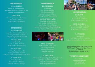 Diese Woche war der Start in unser vollgepacktes Ferienangebot 2025. Was dieses Jahr noch so ansteht kann dem groben Übersichtsflyer entnommen werden. Genaue Infos zu den Angeboten werden circa 5 Wochen vor den jeweiligen Ferien via Insta, WhatsApp, Mail, Flyern etc veröffentlicht.
