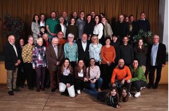 Da die Veranstaltung auf den Internationalen Frauentag fiel, ließ er es sich mit Unterstützung von Marius Fröhlich von der Kirmestruppe nicht nehmen, jeder Frau eine Rose zu überreichen. Zur Erinnerung an diesen Tag stellten sich die Anwesenden zum Gruppenfoto zusammen, das Christiane Specht machte. Mit einem leckeren Büfett, bei guten Gesprächen und Tanz klang der schöne Abend aus. Ein herzliches Dankeschön geht an alle, die bei der Organisation der Jubiläumsfeier halfen.