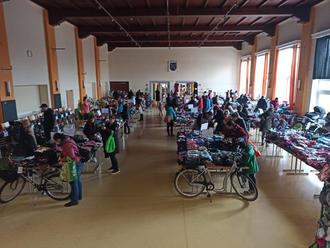 Insgesamt 65 VerkäuferInnen haben dafür die Dachböden und Kellerräume geleert und Ihre Waren am Freitag, 15.03.2024, zum Flohmarkt abgegeben. Bis in die Nacht hinein haben die „Fleißigen Helfer“ die Artikel sortiert und eingeräumt. Kleidung, sowie Jacken und Bademode konnte in den Größen 50 bis 188, sowohl für Mädchen als auch für Jungen angeboten werden, Schuhe waren bis Größe 41 verfügbar. Bei der Babyausstattung reichte das Angebot von Tüchern, Babytragen und Babykostbereitern bis hin zu Kinderwagen, Babystühlen und Babybetten, auch für werdende oder frische Mamas waren reichlich Artikel wie Umstandsmode, Stillkissen und Wickeltaschen vorrätig. Zahlreiche Rucksäcke, Ranzen und Taschen sowie Kindersitze und Bettwäsche waren im Angebot. Auch Fahrzeuge wie Roller, Lauf- und Dreiräder und Fahrräder in verschiedenen Größen standen zum Verkauf. Beim Spielzeug gab es nichts, was es nicht gab, ob Bücher, Fahrzeuge, Baby- und Kleinkindspielzeug, Puzzle, Gesellschaftsspiele, Kinderküchen- und Kaufmannsladenausstattung oder Konstruktionsspielzeug - von allem war etwas dabei. Somit gab es ein vielfältiges Angebot für alle Familien mit Kindern - egal ob groß oder klein.