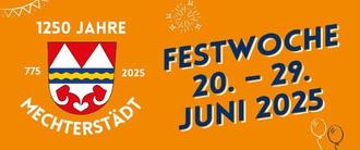 Bald ist es so weit und wir wollen mit vielen Gästen aus nah und fern die Ersterwähnung unseres Dorfes vor 1250 Jahren feiern. Zum Abschluss der Festwoche am Sonntag, den 29.06.2025 wird es einen großen Festumzug durch unser Dorf geben. Der Umzug beginnt in der Auenstraße und endet auf dem Sportplatz. Dort wollen wir mit allen Teilnehmerinnen und Teilnehmern, den Mechterstädtern und ihren Gästen die Festwoche musikalisch ausklingen lassen. Für das leibliche Wohl sorgt das Landgasthaus „Lindenhof“.