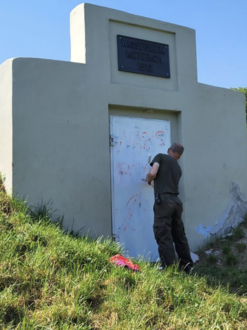Die Tür unserer historischen Wasserzisterne wurde von Schmierereien befreit und neu gestrichen.