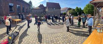 Eine Veranstaltung folgt der nächsten - am Tag nach dem Trügleber Seniorentreff fand der diesjährige Frühjahrsputz statt. Es versammelten sich ca. 9 Uhr am Samstagmorgen auf dem Schulhof in Trügleben motivierte Mithelferinnen und Mithelfer, darunter: 35 Erwachsene, 9 Jugendliche und 7 Kinder, die bestrebt sind, unser Dorf gepflegt und in Ordnung zu halten. Mit Eimer, Putzlappen, Rasentraktoren, Rechen, Besen und noch vielen anderen Geräten packten alle kräftig mit an. Es wurden Arbeiten verrichtet, wie zum Beispiel gründliche Reinigung und Ordnung unseres gern genutzten Dorfgemeinschaftshauses, Unkraut jäten, Grasmahd an verschiedenen Stellen z.B. an der Kiesgrube oder auf dem Spielplatz, Streichen des Holzhauses im Schulgarten, einige Müllsammelstellen, Säuberung der Bushaltestelle und des Bushaltestellenhäuschens und noch ganz viele andere Dinge.