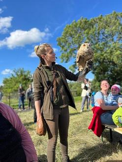 Zum Glück hatte auch das Wetter ein Herz für Kinder und die Sonne lachte am Nachmittag vom Himmel. Selbstgebackener Kuchen, Leckeres vom Rost, Eiswagen und Zuckerwatte luden zum Verweilen ein. Die Kinder fanden ihren Spaß auf der Hüpfburg, an der Kletterstange, an der Bastelstraße, beim Kinderschminken oder dem Feuerwehrauto. Absoluter Höhepunkt in diesem Jahr war der Besuch der Greifenwarte Falknerei am Rennsteig aus Ruhla. Während der einstündigen Flugshow konnten alle Kinder, und natürlich auch die Erwachsenen verschiedene Greifvögel und Eulen bestaunen. Die Begeisterung war riesig.