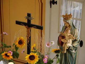 Seit diesem besonderen Gottesdienst schmückt eine wunderschöne und sehr gut erhaltene Marienstatue unsere Kirche. Nochmals herzlichen Dank an die Spenderin Andrea, die uns diese aus ihrem Familienbesitz stiftete.