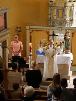 Johanniskirche Trügleben - Mit einem emotionalen und festlich gestalteten Gottesdienst hat sich die Gemeinde am Sonntag, dem 17.08.2025 von ihrer langjährigen Pfarrerin, Frau Liebe, verabschiedet. Fast 30 Jahre lang prägte sie das Gemeindeleben - nun tritt sie in den wohlverdienten Ruhestand. Die Kirche war fast bis auf den letzten Platz gefüllt. Viele Gemeindemitglieder wollten die Gelegenheit nutzen, um persönlich „Danke“ zu sagen. Frau Liebe war über all die Jahre hinweg eine zentrale Säule der Gemeinde - beliebt bei Jung und Alt, stets mit Herz dabei und für jeden ein offenes Ohr.