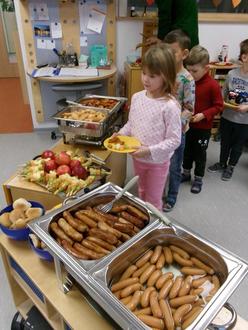 … und am vergangenen Freitag stapfte er dann in Kindergarten „Pfiffikus“ in Föritz herbei. Bevor er jedoch kam, gab es ein leckeres Frühstücksbüffet, das wir dank der Schulküche Räder geniessen durften.