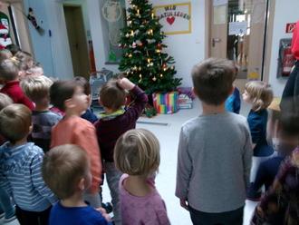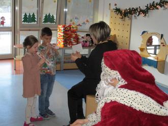 Danach erklangen Weihnachtslieder und -gedichte sowie Melodien auf der Triola und dann klopfte es auch schon an der Tür und der Weihnachtsmann kam herein.