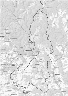 Grenzen des räumlichen Geltungsbereiches der Neuaufstellung des FNP, hier: Gemeindegrenze Föritztal (schwarz) maßstabslos