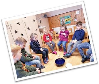 Die Kinder konnten das Element Feuer mit all seinen Facetten erleben. So lernten die Kinder als Erstes wie das Feuer überhaupt entstanden ist. Wir erarbeiteten gemeinsam die Vorteile von Feuer, dass es uns Menschen beispielsweise wärmt, früher Licht spendete und zur Nahrungszubereitung diente. Durch einfache und von der Erzieherin begleitete Experimente erfuhren die Kinder, wie Feuer gemacht und gelöscht wird. Dabei wurden wichtige Regeln im Umgang mit dem Element Feuer erarbeitet, dass es wichtig ist, mit dem Element Feuer sorgsam und verantwortungsvoll umzugehen, da dies der sicherste Schutz vor Gefahren ist. Experimente wie zum Beispiel „Feuer braucht Sauerstoff“, die „Teebeutelrakete“ und „Wie kommt das Ei in die Flasche?“ faszinierten die kleinen Elfen gleichermaßen.