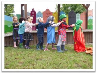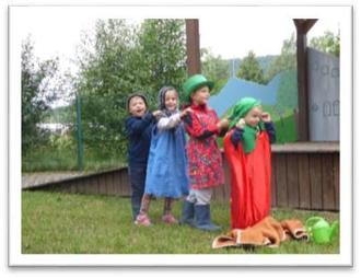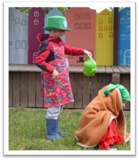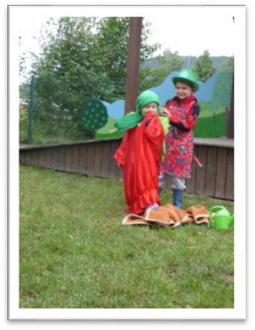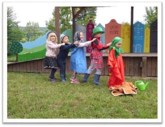 Im Rahmen unserer Feriengestaltung planten wir eine Theatervorführung. Inspiriert von unserer Rübenernte aus dem Hochbeet sollte es die bekannte Geschichte „Die große Rübe“ sein, die sich leicht einstudieren und auch für die Kinder gut umsetzen ließ. So wurden Requisiten zusammengetragen und es fanden sich auch schnell Akteure, die eifrig die kurzen Texte einstudierten. Unter der Regie einer Erzieherin probten die kleinen Schauspieler ihre Rollen.