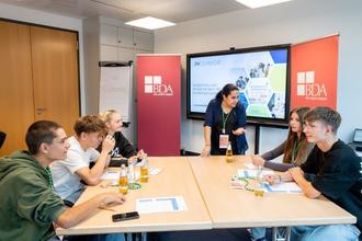 In aller Frühe ging die Reise mit dem ICE los. Dann, pünktlich um kurz vor 10:30 Uhr sind wir am Haus der deutschen Wirtschaft, im Zentrum Berlins angekommen. Nach der Identitätskontrolle wurden wir mit unseren Namensschildern sowie Frühstück und Getränken herzlichst begrüßt, bevor sich alle im großen Veranstaltungssaal versammelt haben, um die Begrüßung von Christina Ramb (Mitglied Geschäftsführung BDA) mitzuerleben. Diese fand um ca. 11:00 Uhr statt.