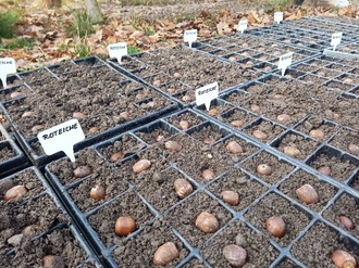 Die Waldfreunde Gotha säten Roteicheln, Schwarznüsse, Baumhasel und Walnüsse in Pflanzpaletten. Mit dieser Patenschaft über ca. 1800 heranwachsenden Bäumchen und dem Pflanzen im Herbst ist wieder ein kleiner Schritt zum Waldumbau getan.