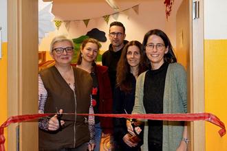 Deshalb ließen es sich Vertreter der Regionalstiftung der Kreissparkasse Gotha sowie Dana Hellmann und Sabine Erlewein der Stadtwerke Gotha GmbH nicht nehmen, das rote Band zu durchtrennen. Darauf warteten bereits die kleinen Gäste des Begegnungscafés auf dem Hauptmarkt 17 sehnsüchtig. Das Spielzimmer im Mehrgenerationenhaus wurde sogleich erobert. Anwesende Eltern berichteten, dass sie das Spielzimmer sehr schätzen würden, denn jüngere und auch etwas ältere Kinder können dort gefahrfrei und entspannt spielen, während die dazugehörenden Erwachsenen das Café des Hauses nutzen. Das macht das Mehrgenerationenhaus des lebensart e.V. zu einem wichtigen Treffpunkt für Familien. Mit der Neugestaltung und Ausrüstung mit einem hochwertigen Spielhaus wird das Spielzimmer auch wieder den hohen Anforderungen der häufigen Nutzung gerecht.