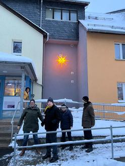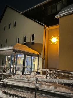 Die Firmen Elektro Fröh Gefell und Meinel Metallbau Bad Lobenstein haben einen großen Herrnhuter Stern gestiftet und diesen auch angebracht.