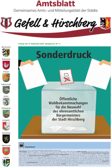 Öffentliche Wahlbekanntmachungen für die Neuwahl des ehrenamtlichen Bürgermeisters der Stadt Hirschberg