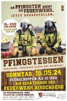 Die Hirschberger Feuerwehrmänner (und -frauen) begehen am Sonntag, dem 19.05.2024, ihr zweites Pfingstessen. Auf der Speisekarte stehen auch diesmal wieder Rouladen mit Thüringer Klößen und Rotkraut.