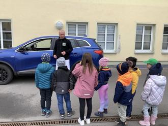 Den Kindern wurde gezeigt, wie durch entsprechende Körperhaltung und -sprache, Mimik, Gestik sowie laute, kurz und prägnante Aussprache dem Gegenüber verdeutlicht wird, wenn man etwas nicht möchte („Nein“) und welche Befreiungstechniken es gibt, wenn ein Kind festgehalten wird. Auch die Strategie, den Schulranzen im Notfall wegzuwerfen oder dagegen zu treten, um den potentiellen Angreifer abzulenken, wurde selber ausprobiert. Des Weiteren konnten die Saalespatzen gegen verschiedene Schlagpolster mit Händen und Füßen treten, um selbst zu erfahren, welche Methoden es zum eigenen Schutz gibt. Auch Orte und öffentliche Gebäude wurden benannt, z.B. zu Hause, Apotheke, Bäcker usw., die die Kinder im Ernstfall zur Hilfe und zu ihrem Schutz aufsuchen sollten. Zum Abschluss demonstrierte Herr Schricker auf dem Außengelände der Feuerwehr die Situation, wenn ein Auto anhält und nach dem Weg fragt.