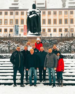 aus dem Elch-Report Anfang Dezember wurde einmal mehr die Partnerschaft zwischen den Gemeinden Walschleben, Witterda und Budenheim nahe Mainz mit Leben erfüllt. Was nach der Wende entstand - ein reger, konstruktiver Erfahrungsaustausch mit dem Ziel, voneinander zu lernen, die Entwicklung des jeweils anderen zu begleiten - ist zu einer unverzichtbaren Tradition geworden. Was macht die Heimat des jeweils anderen besonders, wo liegen die Stärken, welche Themen gilt es zu bewältigen - viel Gesprächsstoff, der nicht nur bei den gegenseitigen Besuchen im Mittelpunkt steht. Vom 2. bis zum 4. Dezember weilte eine Delegation der Partnergemeinde in Walschleben und Witterda. Der Besuch des Schlosses Friedensstein in Gotha, eine Stippvisite beim Erfurter Weihnachtsmarkt, eine interessante Führung durch die Horchgänge des Petersberges, gemeinsame Essen mit Gespräche und Erfahrungsaustausch standen auf dem Programm. Das nächste Treffen ist für den April 2023 geplant zum Blütenfest in Budenheim.