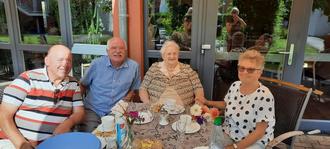 Neben der Jubilarin sitzt ihre Tochter nebst Schwiegersohn. An diesem sonnigen Tag waren noch viele Verwandte und Bekannte zum Gratulieren ins Pflegeheim gekommen.