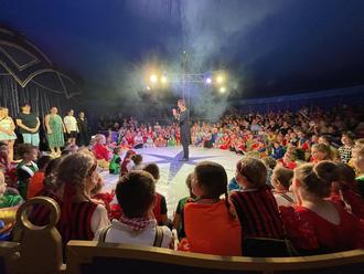 In der letzten Augustwoche war der Zirkus „SIMSALABIM“ in unserer Grundschule zu Gast. Beim Zeltaufbau am Sonntagvormittag halfen viele Eltern. Als wir am Montag von der Grundschule zum Zirkuszelt liefen, waren alle sehr aufgeregt. Uns erwartete eine tolle Zirkusvorstellung von den Profis - unseren späteren Trainern. Anschließend wählten wir uns in Gruppen ein. Es gab Boden- und Luftakrobaten, Seiltänzer, Hula-Hoop-Mädchen, Fakire, Zauberer und Clowns. Einige Kinder haben aber auch mit Hunden, Ziegen und Tauben gearbeitet.