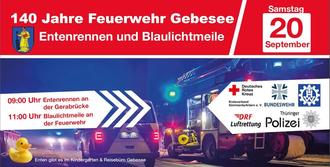 Die Freiwillige Feuerwehr Gebesee feiert in diesem Jahr ihr 140-jähriges Bestehen - und lädt aus diesem Anlass am Samstag, den 20. September 2025, zu einem ganz besonderen Entenrennen mit anschließender Blaulichtmeile ein. Die Veranstaltung verspricht einen erlebnisreichen Tag für die ganze Familie.