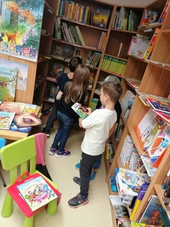 Beim ersten Besuch gab es erstmal eine Mitmach-Geschichte und die Vorstellung der Bibliothek. Danach durften die Kinder sich eigenständig Bücher aussuchen, anschauen und auch welche für ihre Gruppe ausleihen.