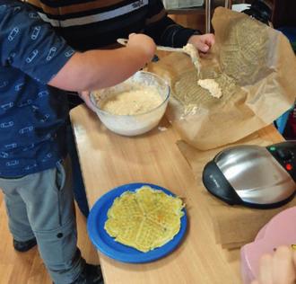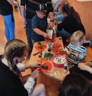 Im Rahmen des dreijährigen Projektes „Jolinchen Kids - Fit und gesund in der Kita“ organisierte die AOK gemeinsam mit dem Kinderland Ringleben e.V. eine erlebnisreiche Mitmach-Aktion für Kinder und Eltern. Das Drachenkind Jolinchen erklärte den Teilnehmern kurz die Ernährungspyramide, beziehungsweise den "Drachenzug“, und welche Portionsgrößen für eine drachenstarke Kinder-Brotdose geeignet sind. Dann ging es auch schon ans Werk! An drei verschiedenen Stationen haben die Kinder gemeinsam mit Ihren Eltern und Erzieherinnen einen Karibikabenteuer-Quark, Gemüsewaffeln und einen Kraftfutter-Brotaufstrich hergestellt. Im Anschluss durfte selbstverständlich auch alles verkostet werden. Und wie lecker es geschmeckt hat, vor allem den Kindern!