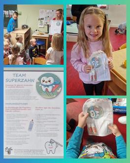 Am 01.10.2025 besuchten uns die Zahnärztin Frau Dr. Illge und ihr Team. Sie verlieh dem Kinderland Ringleben eine neue Urkunde. Jetzt dürfen wir uns auch „Team Superzahn“ nennen!