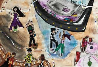 Zu den Themen „Das tapfere Schneewittchen“, „It`s my life“, „DU-versität“ oder „Sehnsucht Frieden“ entstanden im Kunstunterricht vielfältige Bilder, von denen eine Auswahl in den Wettbewerb gegeben wurde. Dann war etwas Geduld nötig, bis die finalen Preisträger*innen feststanden, schließlich konkurrierte man mit Einsendungen aus dem gesamten Bundesgebiet.