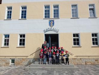 Unser Projekt „Meine Stadt“ führte uns diesmal ins Rathaus. Rathaus? Was ist eigentlich ein Rathaus und wofür braucht man das? Und warum arbeiten da so viele Leute? Der Bürgermeister hat dort auch ein Zimmer? Viele Fragen hatten wir, die wir Frau Fuchs stellen wollten. Sie erzählte uns, dass das Rathaus schon vor fast 500 Jahren gebaut wurde und dann sogar mal abgebrannt war. Dann durften wir überall mal rein sehen und den Mitarbeitern kurz über die Schulter schauen. So viele Aktenordner und Computer....