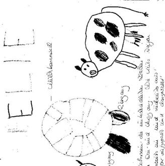 Wir bedanken uns recht herzlich bei Georg Fischer und Beate Borsch für die interessante Führung. Wir haben viel gelernt und sind begeistert und euphorisch in den Kindergarten zurück, gekehrt. Am nächsten Tag haben wir die Erlebnisse und Eindrücke aufgemalt, es sind wundervolle Kunstwerke entstanden. Einige Kinder haben bis ins Detail das Milchkarussell, oder die Versorgung der Kälbchen gezeichnet.