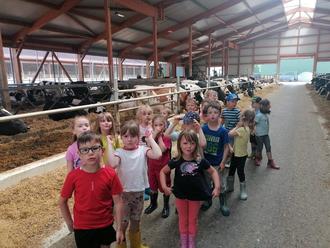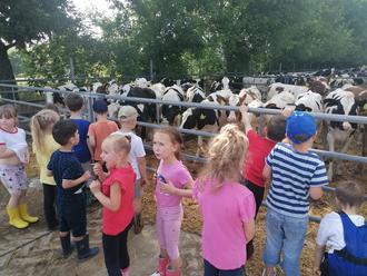 Ein Highlight war das vollelektronische Milchkarussell! Wir beobachteten, wie die Kühe dort selbstständig ein- und aussteigen, sich der Roboter an den Zitzen der Kuh aussaugt und die Kuh so gemolken wird. Der Melkvorgang wird elektronisch, durch die Mitarbeiter überwacht, sie sehen alle erforderlichen Daten der Kuh. Wir kennen nun den Weg, der Milch vom Stall in Gebesee, über den Transport in eine Molkerei, bis sie wieder hocherhitzt und gereinigt im Kindergarten auf dem Tisch steht.