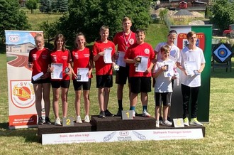 Vor allem in der teilnehmerstärksten Klasse, den Recurve-Schützen AK Schüler A mit 17 Sportlern, konnten unsere Starter, Konstantin Benischke, Nils Kurz und Niklas Löbner überzeugen. Konstantin sicherte sich die Silbermedaille. Niklas und Nils platzierten sich solide im mittleren Bereich mit einem 8. und einem 11. Platz. Doch in der Mannschaftswertung holten sie mit 1640 Ringen das Gold und ließen die Gastgeber Stahl Unterwellenborn und SV Erfurt-West 90 e.V. deutlich hinter sich.