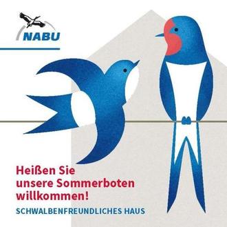 Der NABU dankt daher Menschen, die Schwalben beim Nestbau, z.B. durch Anlegen von Lehmpfützen oder Anbringen von Nisthilfen unterstützen oder Schwalbennester an ihren Gebäuden schützen und erhalten. Mit der Plakette an Ihrem Haus machen Sie andere auf die Bedeutung des Schwalbenschutzes aufmerksam.
